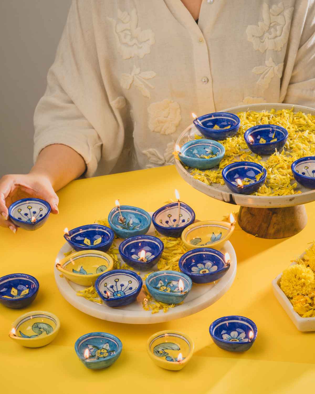 Assorted Blue Pottery Diya (Set Of 20)