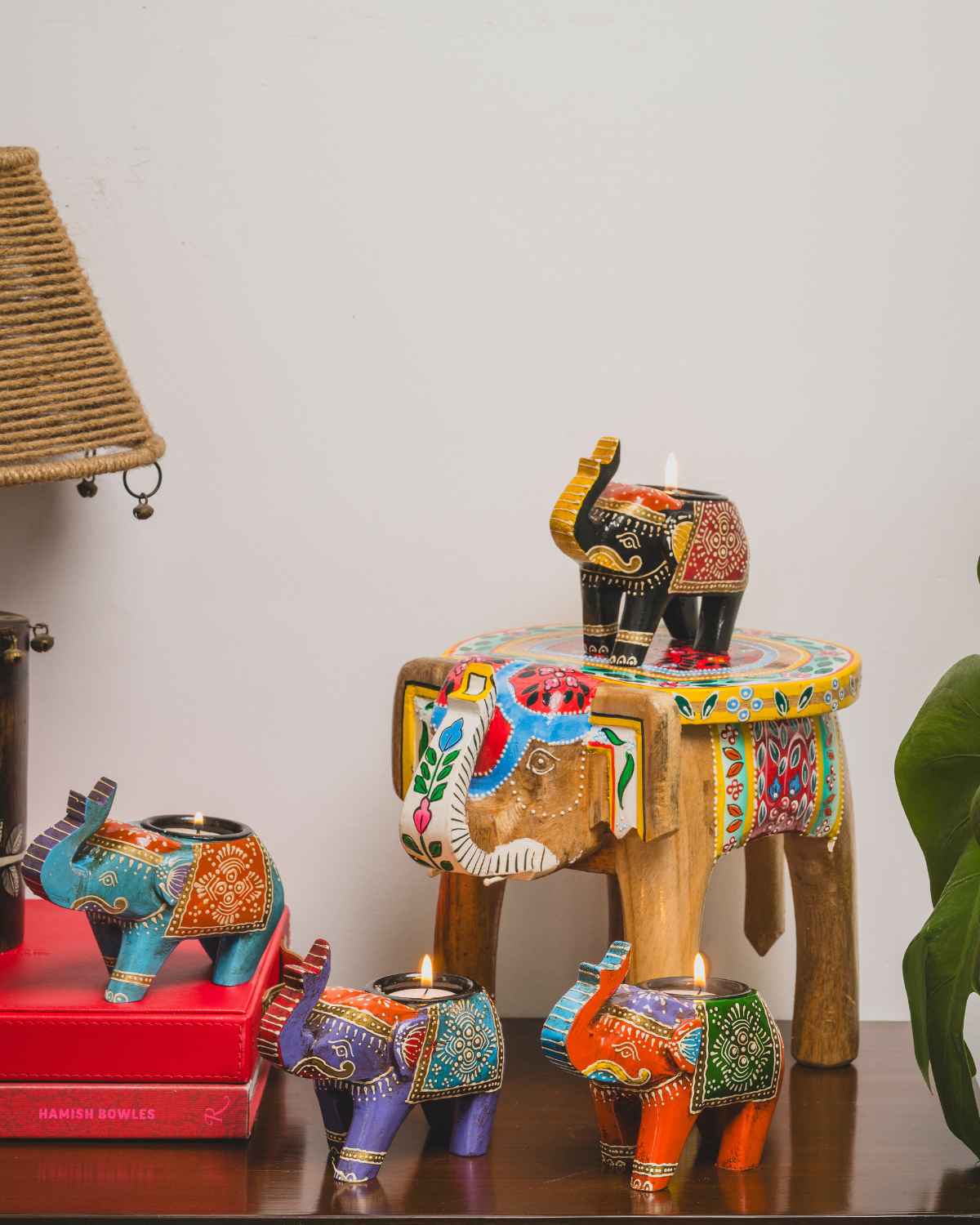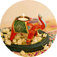Assorted Handpainted Elephant Candle Holder (Set Of 4)