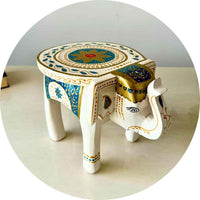 Mehendi Green Handpainted Wooden Elephant Stool