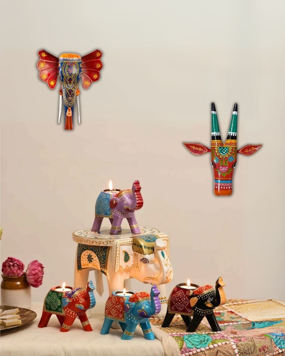 Assorted Handpainted Elephant Candle Holder (Set Of 4)