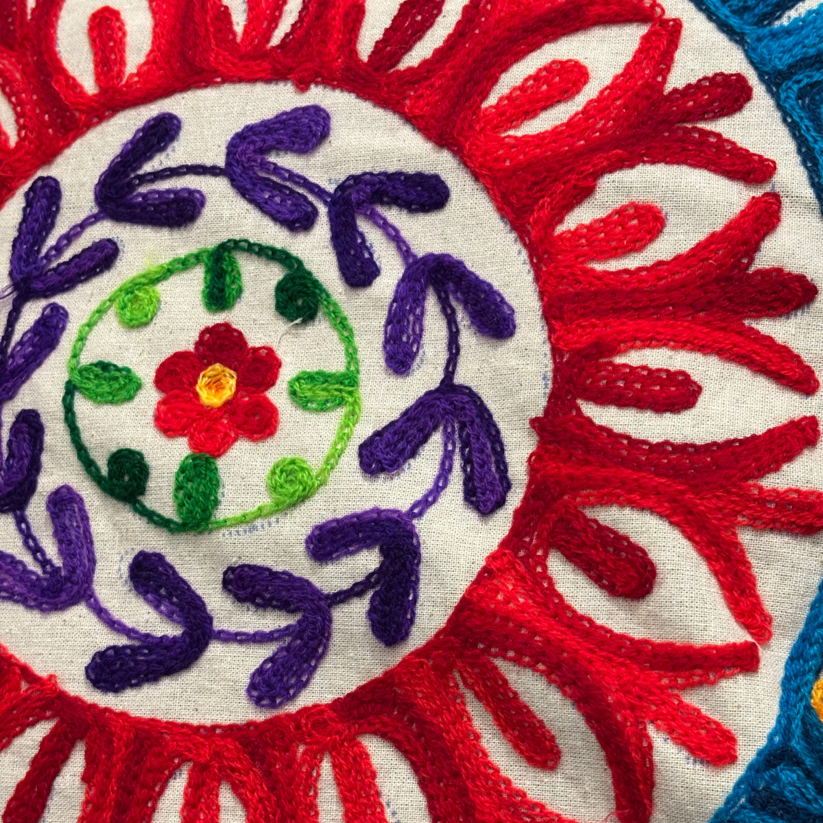 Aari Embroidery, originating from the state of Gujarat, is a delicate and intricate needlework technique known for its fine threadwork and detailed patterns. Featuring floral and nature-inspired motifs, this craft uses a specialized hooked needle called an "Aari" to create exquisite designs on fabric. Its elegance makes it a popular choice for traditional and contemporary home decor.