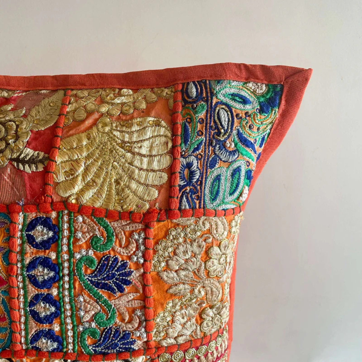 Khambadia Patchwork is a vibrant and sustainable craft that repurposes fabric scraps into striking patchwork designs. Sourced from Rajasthan, this art form is characterized by bold colors, intricate patterns, and a touch of rustic charm, perfect for adding a bohemian vibe to home spaces.