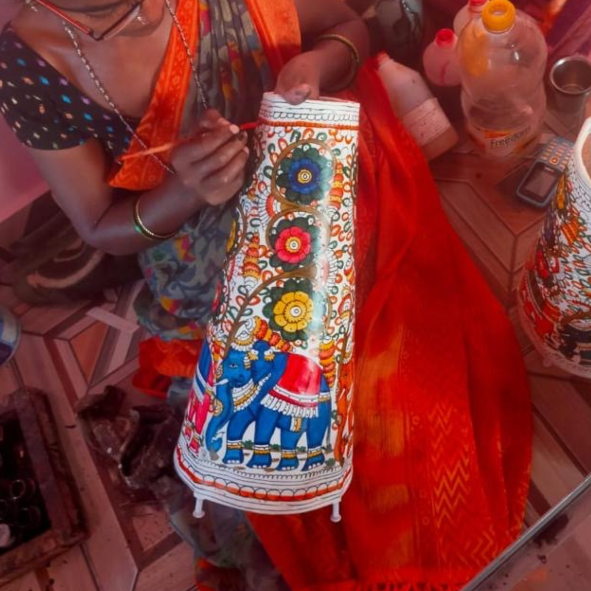 Tholu Bommalata, a traditional art form from Andhra Pradesh, is celebrated for its intricate leatherwork and vibrant storytelling motifs. When used on lamps, this craft transforms them into luminous works of art, casting mesmerizing patterns and a warm, cultural glow that enriches any space with its timeless charm.
