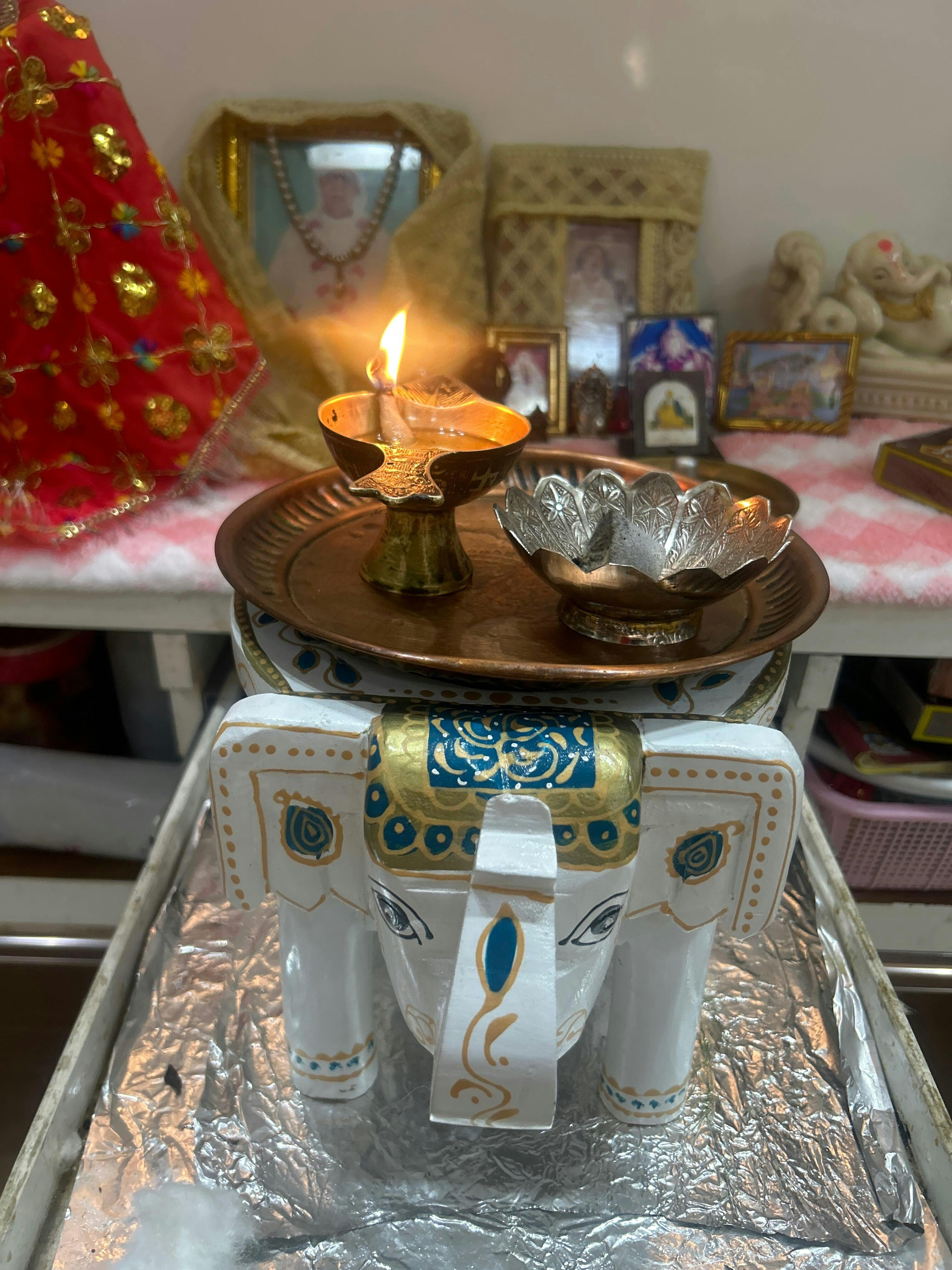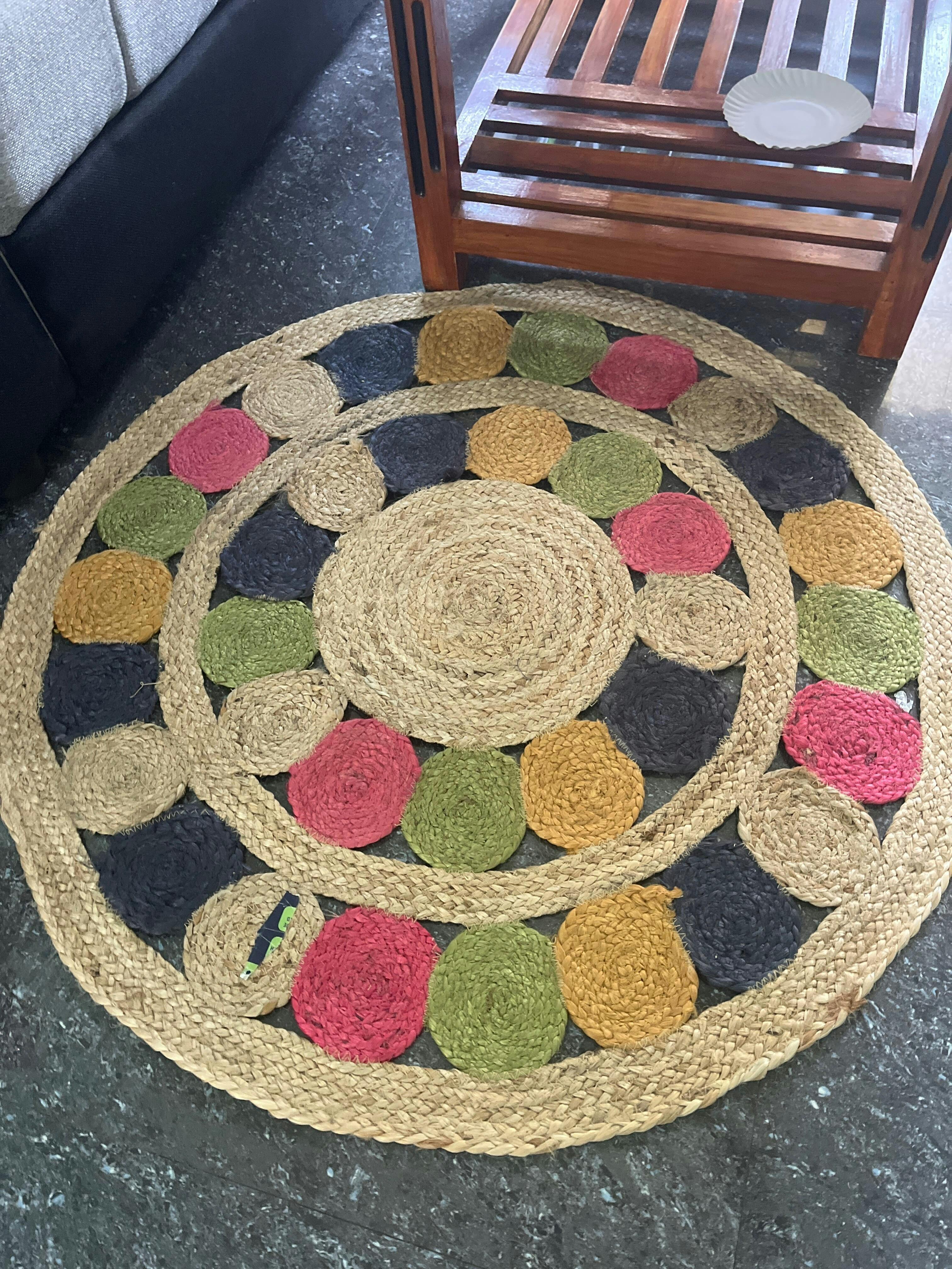 I bought wooden painted frames, mirror, elephant stool and sun/moon hanging. All the products are one above the other.