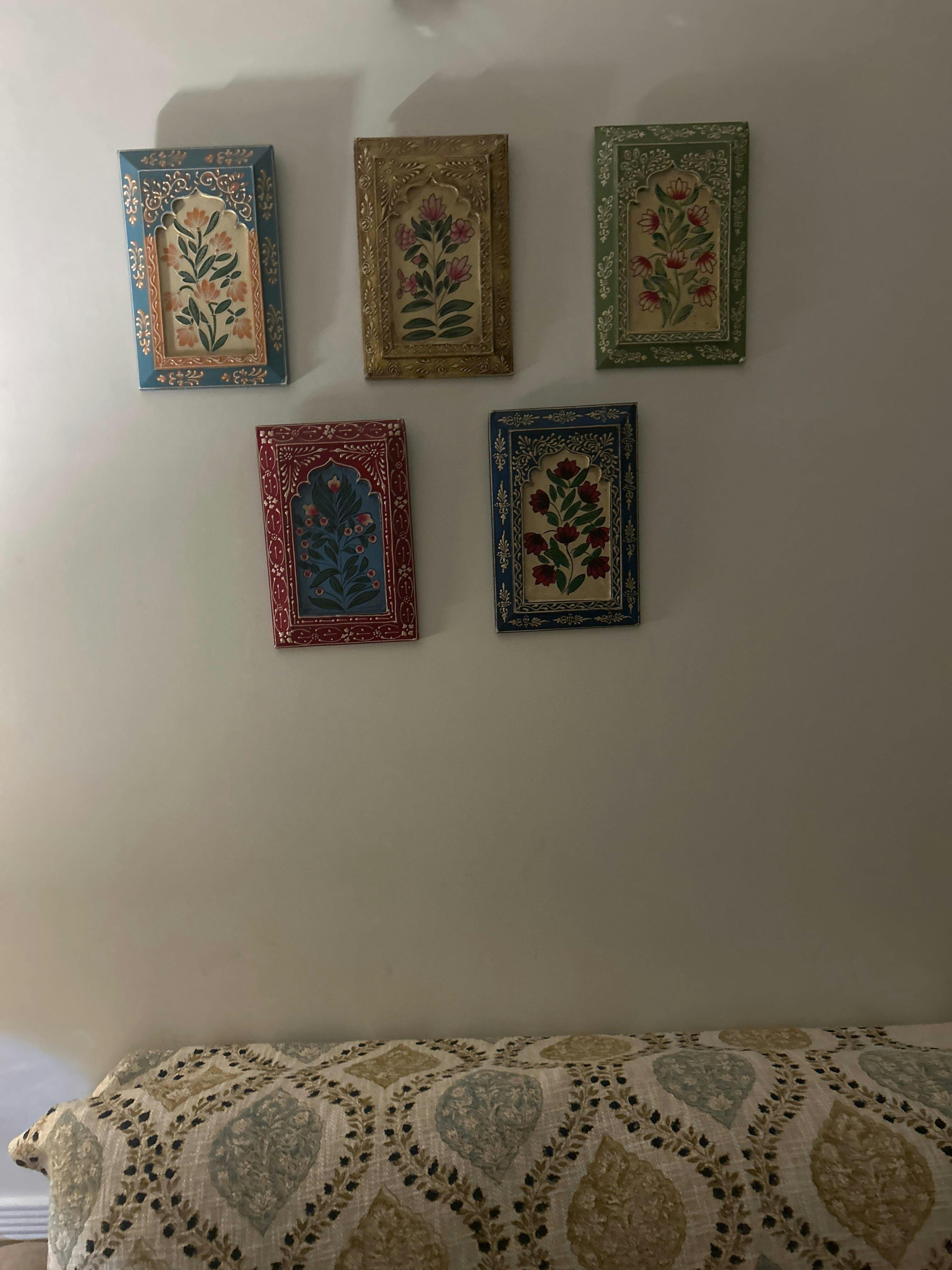 Bring your walls to life with our Assorted Handpainted Wooden Wall Frames set featuring five uniquely designed frames, perfect for displaying cherished memories or artworks.