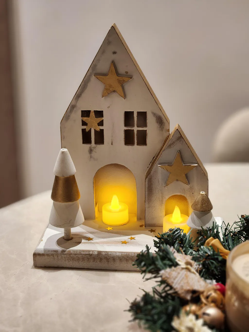 This rustic wooden house tealight holder creates the perfect holiday glow. Light a tealight inside and watch the cozy ambience instantly elevate your Christmas styling.